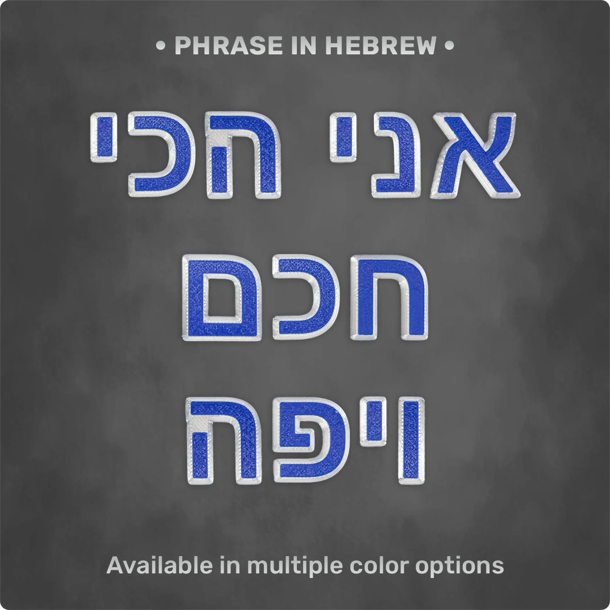 The phrase “אני הכי חכם ויפה” (translation: “I am the smartest and most handsome”, masculine form) is a fun and confident reminder of your strengths and self-assurance. This magnetic set is perfect for placing on a refrigerator, board, or any other metal surface to start each day with a smile and a positive attitude.