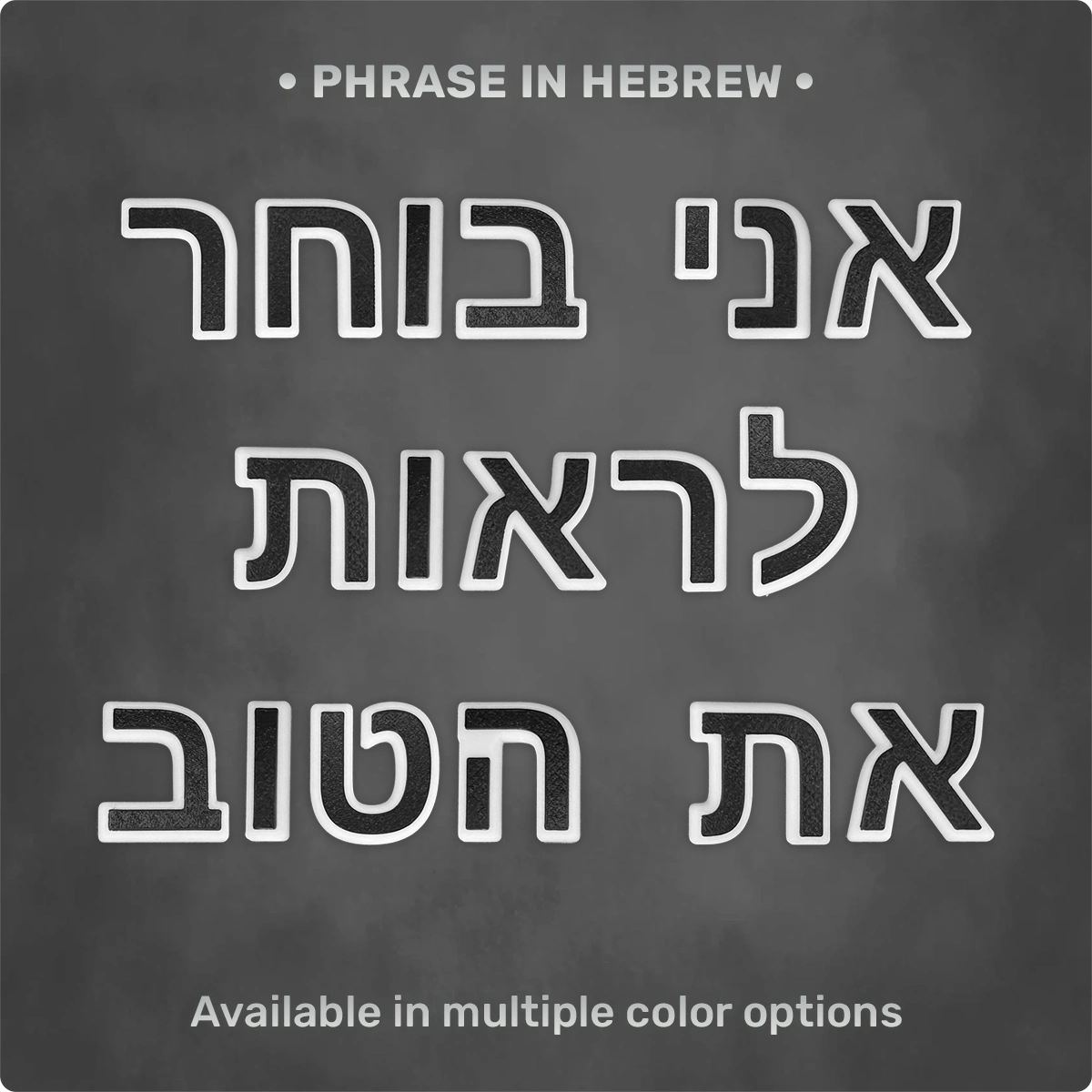 Phrase “אני בוחר לראות את הטוב” from Magnetic Letters