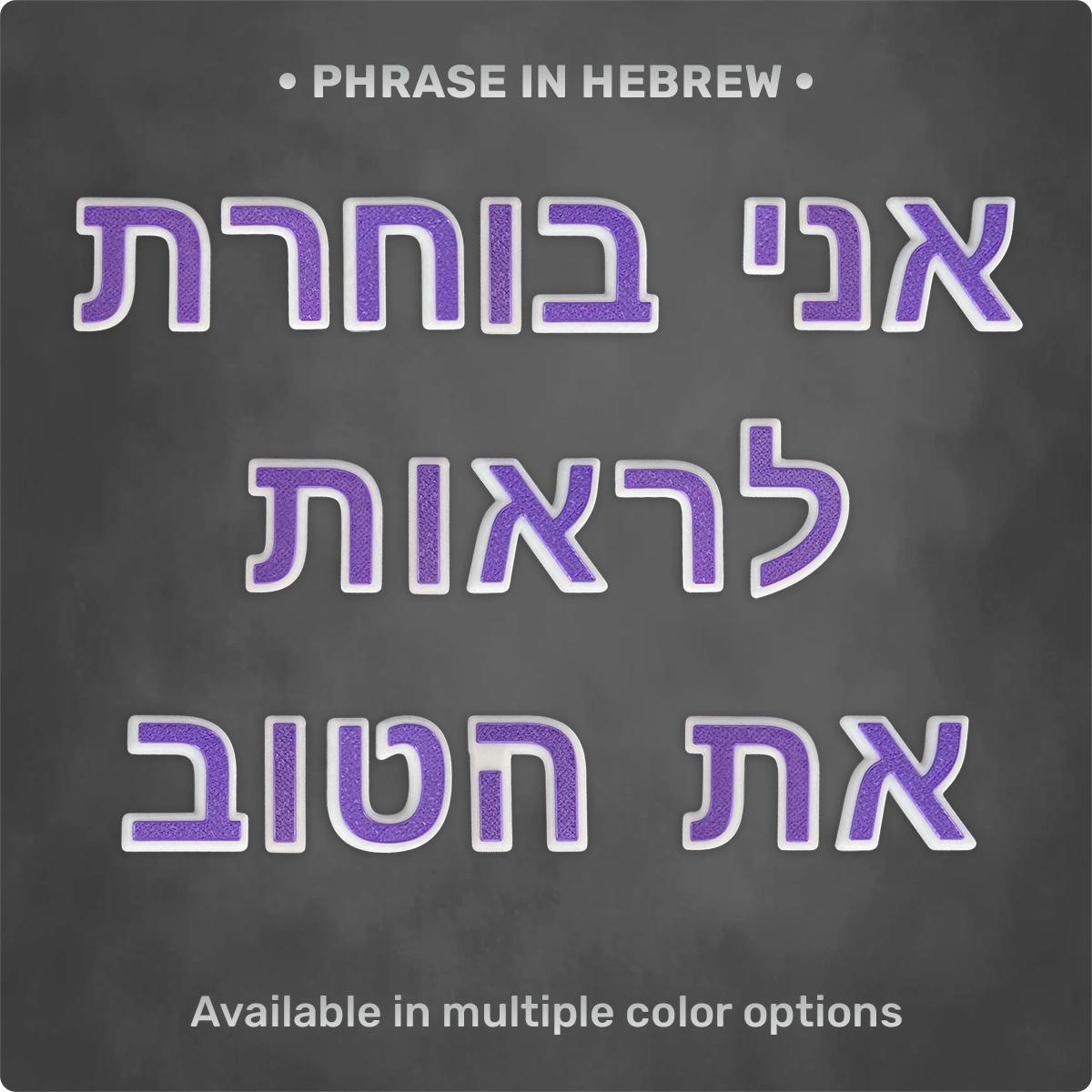 Phrase “אני בוחרת לראות את הטוב” from Magnetic Letters