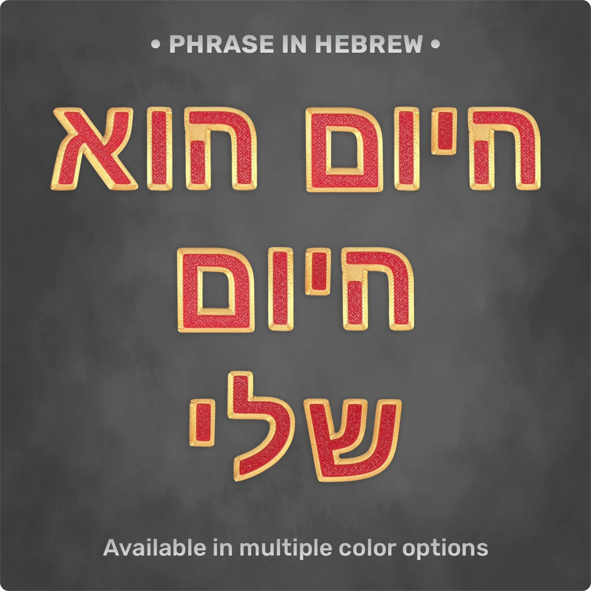 Phrase “היום הוא היום שלי” from Magnetic Letters